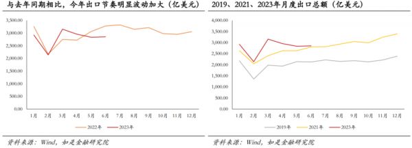 如何理解年初以来外贸数据的几次波动?大波动往往不是一个好信号。主要原因是出口数据往往具有“订单性”。其原因是外贸本质就是由订单所组成的。这也导致了出口数据很有可能因为某些关贸协定生效、某些国家元首会晤、某些季节性因素而集中前置或者后置。其中一个例子就是今年的一季度末。由于疫情原因,今年年初的外贸表现并不好,市场对这一萎靡表现的推测是1月疫情尚未全面达峰,海外订单在国内的生产与销售并未完全恢复,而3月后此前积压的订单陆续释放,带来了一波出口数据小高峰。然后最终Q2的贸易数据告诉我们外需回退是事实,因此个别月份的脉冲式高出口并不可持续。