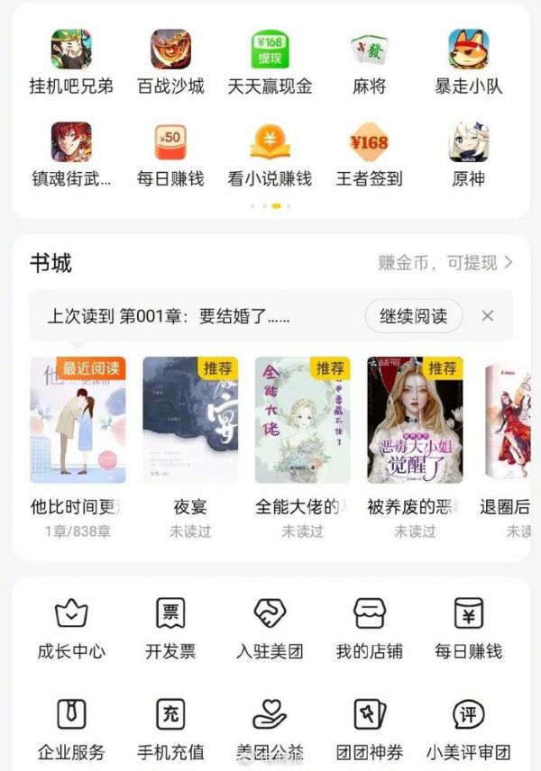 除此之外,美团还加码泛娱乐赛道,上线了小说、短剧等内容服务,近期还在APP内开设了《原神》游戏入口,想要为自己寻找更多新的流量增长空间。