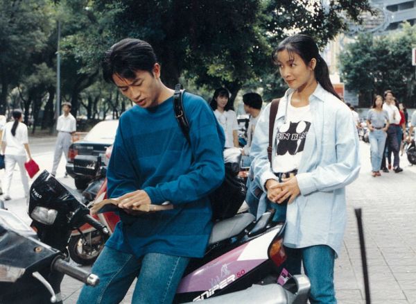 一个男生坐在小摩托上,等着快餐店里打工的女友下班。女友的闺蜜先走出来,看他在读书,就问他在读什么。