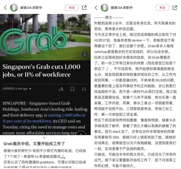 在发现被Grab裁员后,他语气中更是充满遗憾和惋惜。