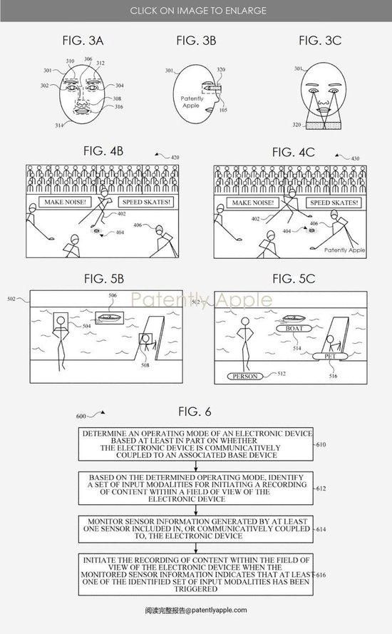 苹果专利图 3B 和 3C 说明了根据该主题技术的实现来追踪注视方向,以启动计算机生成的现实记录的示例;图 4B 和 4C 说明了在计算机生成的现实环境中确定感兴趣区域,并根据感兴趣区域启动记录的示例;图 5B 和 5C 说明了根据该主题技术的某些实现向计算机生成的现实环境中的各种对象或实体提供注释的示例。