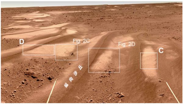 祝融号拍摄的火星上的亮沙与暗沙。图/Science Advances