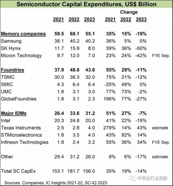 可见,市场不景气,消费电子市场低迷,许多客户砍单,台积电和存储芯片厂商业绩承压。值得注意的是,三星、台积电和英特尔等三大支出方,2023年资本支出将占半导体资本支出总额的60%左右。