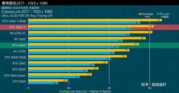 虽然玩家都在期待更有性价比的甜点级显卡,但是对于厂商来说,他们会根据实际的市场需求对显卡产品线进行分割,以让不同级别的显卡有着泾渭分明的性能,用俗话讲就是:“一个萝卜一个坑”,RTX 4060的目标就是让玩家可以畅玩1080P分辨率下的3A游戏。