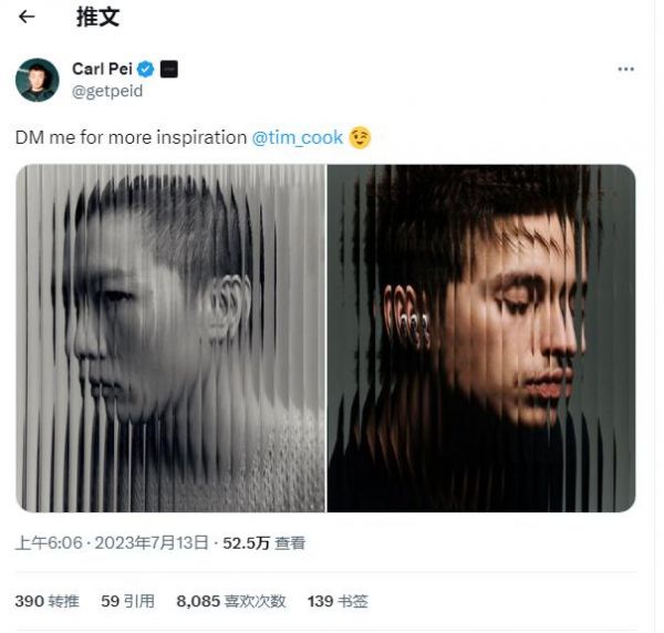 裴宇推文 @ 库克,调侃苹果宣传照抄袭 Nothing