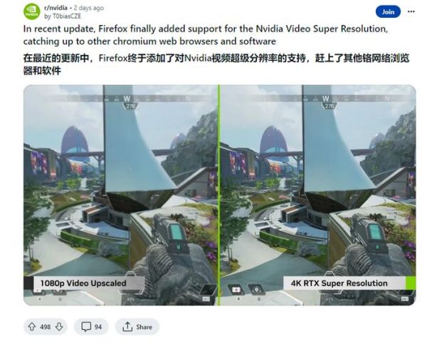 消息称火狐浏览器 Firefox 已初步支持 RTX 视频超分辨率技术