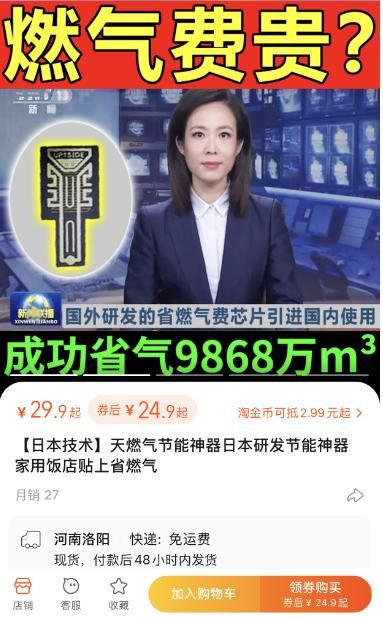 有些商品的销售页面标注着“燃气免费用 贴上十年不交费”“燃气节能贴 每月燃气1元钱”等字样;
