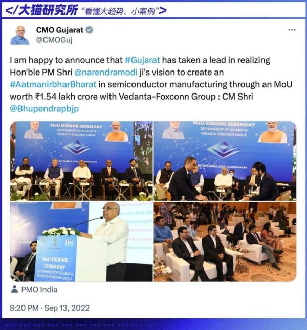195亿美元的投资金额,专攻芯片和显示器,选定了莫迪的老家古吉拉特邦作为落地地区,这是古吉拉特邦有史以来最大笔金额的投资,该邦准备给予合资公司资本和电力等补贴,就等着开工建厂了。
