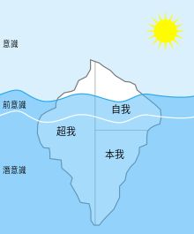 冰山比喻与弗洛伊德所说的精神之间的关系(来源:wikipedia.org)
