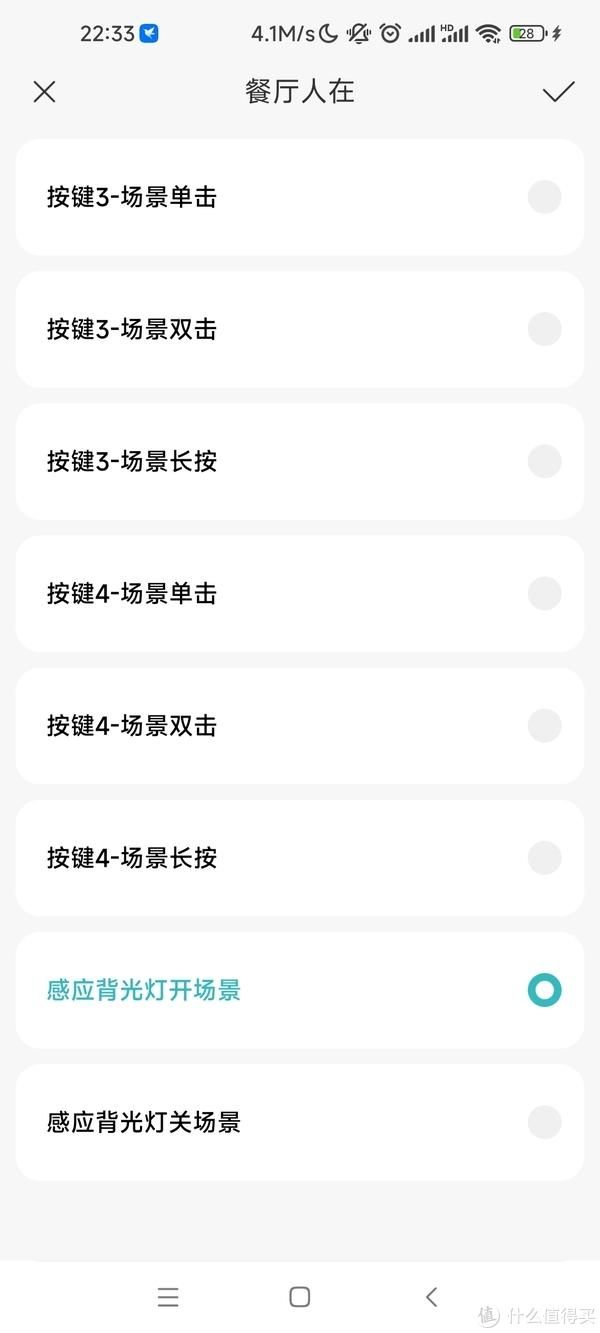 也可以用感应背光灯开和关两个场景作为触发条件,好处是不会被小爱同学误操作按键1