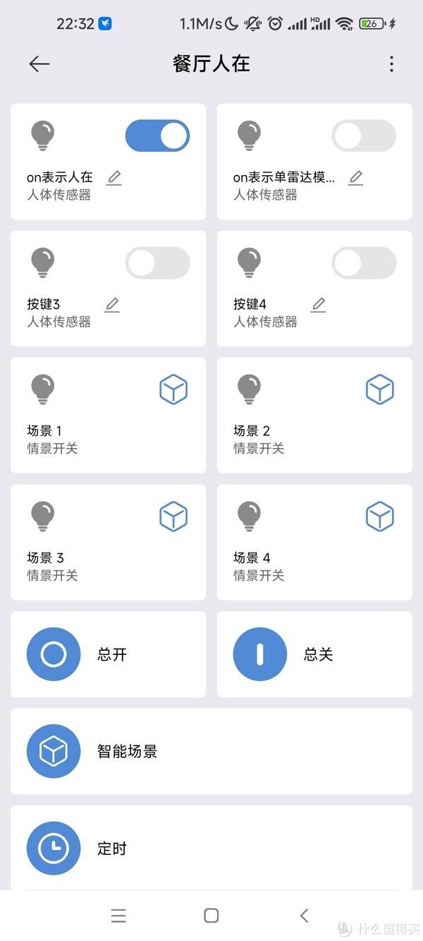 有人时候按键1会变成打开状态,按键1的开关可以用来做触发条件。