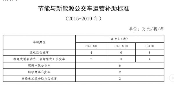 而2015—2019年期间,中央财政对达到新能源公交车推广目标的省份,对纳入工业和信息化部“新能源汽车推广应用工程推荐车型目录”、年运营里程不低于3万公里(含3万公里)的新能源公交车以及非插电式混合动力公交车,按照其实际推广数量给予运营补助。