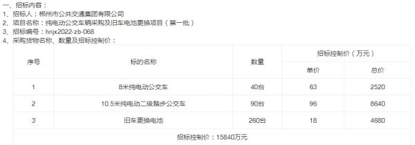 但湖南郴州市曾在2022年10月公布纯电动公交车辆采购及旧车电池更换项目招标公告,旧车更换电池的招标控制价为每辆18万元。