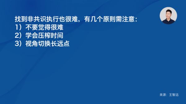 我的写作是最好的例子。当别人一味追求热点,我忙着深耕营销洞察、心智思维两大领域,这种窄门反而吸引诸多用户关注。不过,找到非共识后执行也很难,过程中有几个原则需要注意: