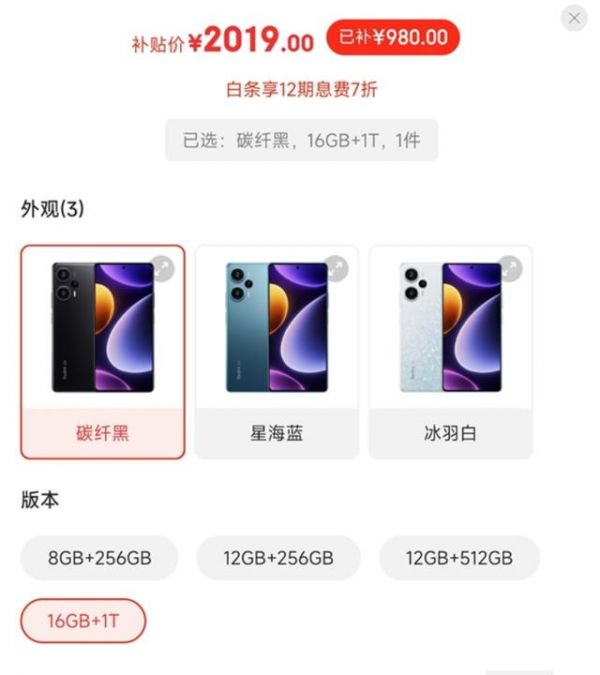 我相信已经有人知道我说的是谁了,原价是2599元16GB+1TB版的Redmi Note 12 Turbo,然而在京东百亿补贴专区中,Redmi Note 12 Turbo 1TB顶配版补贴后的价格是2019元,可以说是目前行业内最便宜的1TB手机,性价比在同档位中堪称无敌。