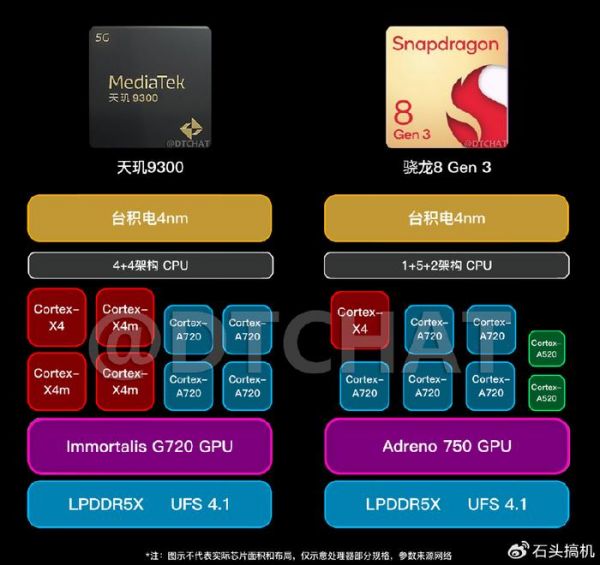 最后:骁龙8 Gen3的功耗如何还不清楚,但大概率不会出现骁龙888的情况,因为竞争对手联发科的天玑9300更猛,CPU直接用了4个X4超级大核+4个A720大核,既然联发科敢这么猛堆性能,说明功耗不是问题,而1个X4超级大核的骁龙8 Gen3自然也不会有问题。