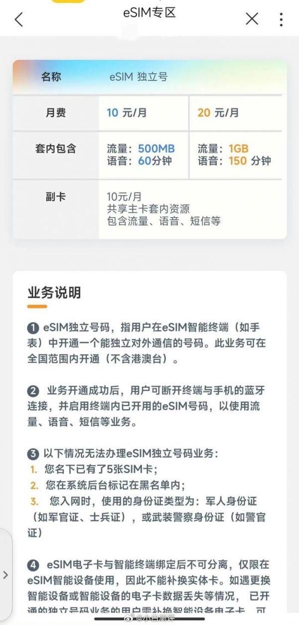 【生活】中国电信暂停eSIM手表业务办理
