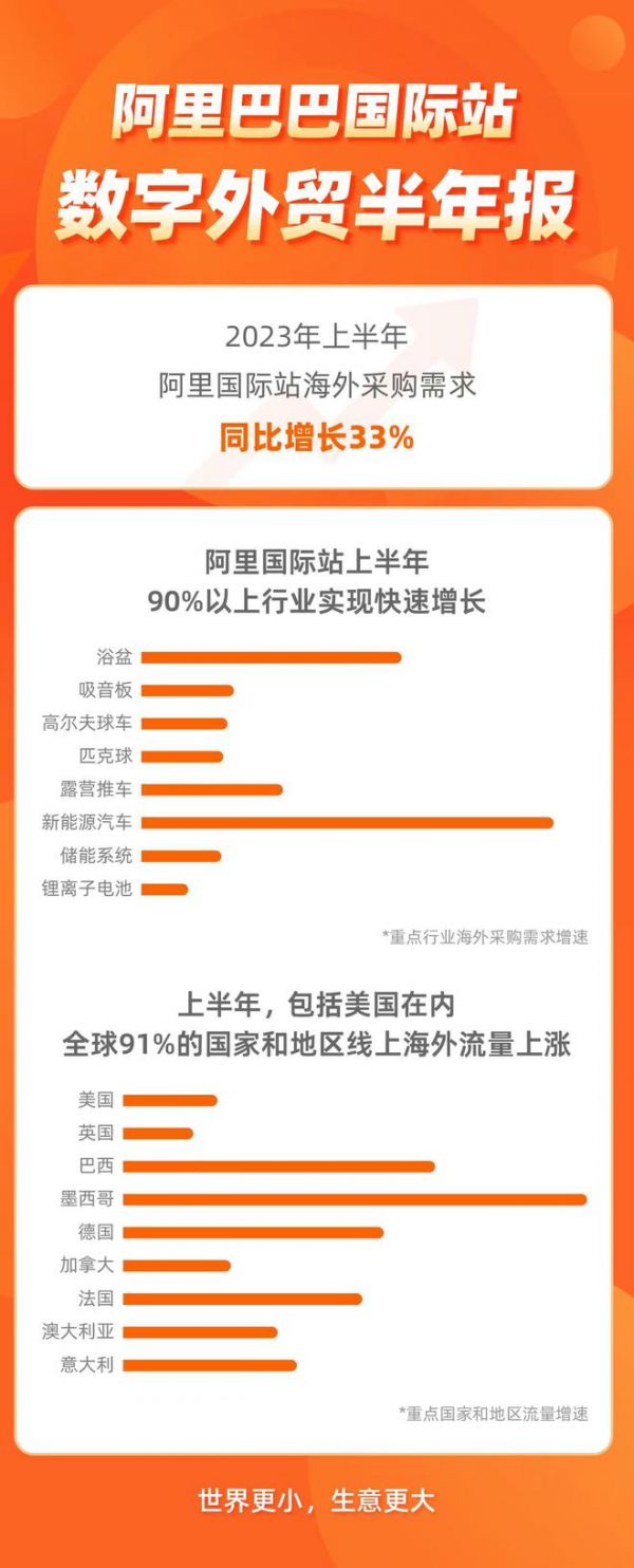 日前,阿里国际站发布数字外贸半年报,2023年上半年,阿里巴巴国际站上,海外线上需求同比增长33%。