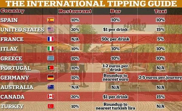 于是,Forbes Advisor公司提供了一部分各国“小费指南”。罗列出一些最受英国人喜爱的度假胜地的小费标准。