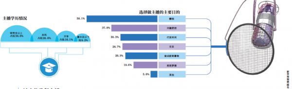 此外,数据显示,职业主播中大学以上学历(含大专)占比为44.5%。而主播的收入与学历成正比,学历越高收入越高。