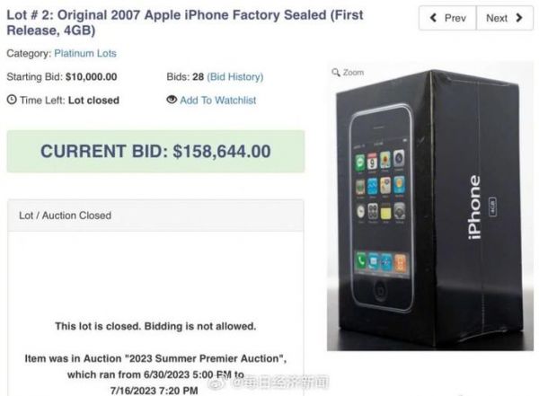 价格绝了!初代未拆封iPhone成拍价约38万元