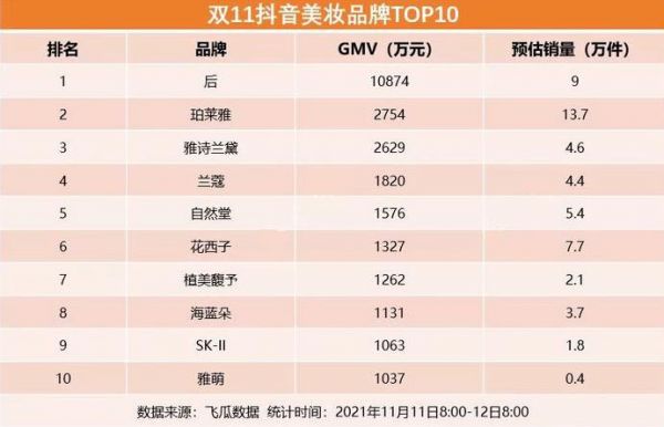 以欧莱雅为例,在2021年抖音双11美妆榜单中,其尚不能进入前10,而到了2022年双11已经挤上第3名。