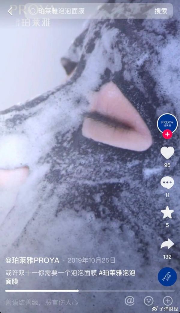 早在2018年,尚在转型摸索中的珀莱雅,便在抖音、小红书等平台试水“爆款”策略。2019年,珀莱雅推出黑海盐泡泡面膜,在多个新渠道测试后,最终选择在还没有形成电商交易闭环的抖音做大规模投放。