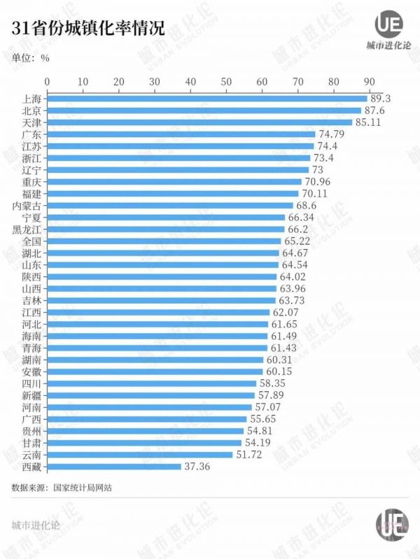 从2022年数据来看,浙江是全国31个省份中常住人口城镇化率排名第六的省份,为73.4%。