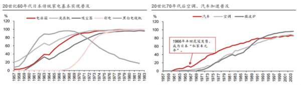 图:泡沫前夕日本白电和汽车渗透率,来源:野村东方国际证券