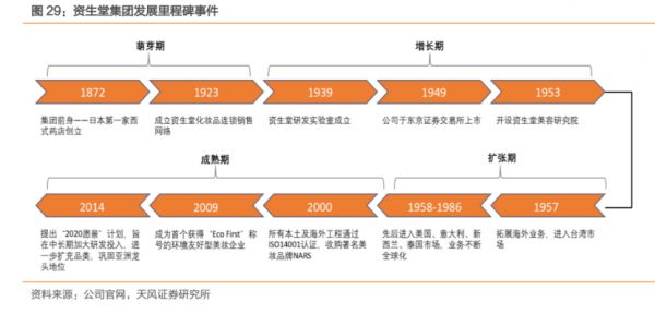图:资生堂集团发展里程碑,来源:天风证券研究所