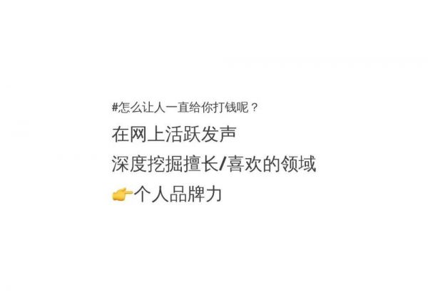 在你运营社交账号的时候,会积累很多粉丝,其中一定会有一部分人是愿意给你的创作打钱的。但是你想让他们一直记得你,就需要花功夫,要在网上活跃地发声,深度挖掘你擅长和喜欢的领域。