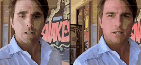 当现实的汤姆·汉克斯完成一个场景的拍摄,模型可以创建他的脸部和其他部位的年轻版。这个过程甚至是实时的: