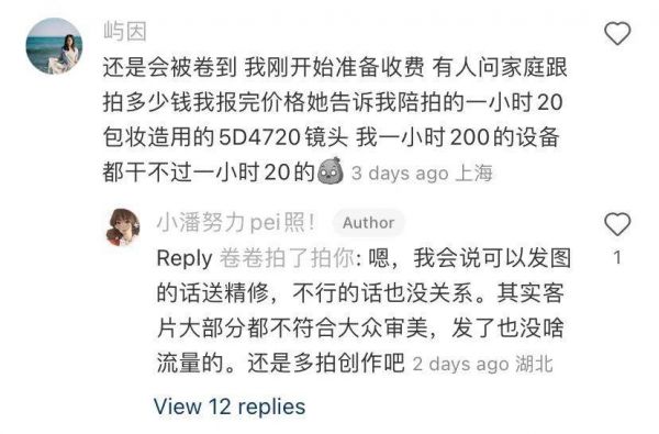 被打压的市场价格,背后全是摄影师的哀号。(图/小红书截图)