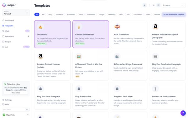 我专门研究了一下Copy.AI和Jasper的用户界面和功能: