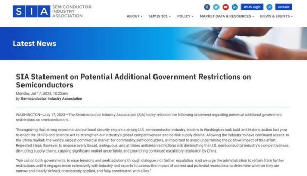 SIA和美芯片巨头齐声警告:不能再升级对华出口限制了
