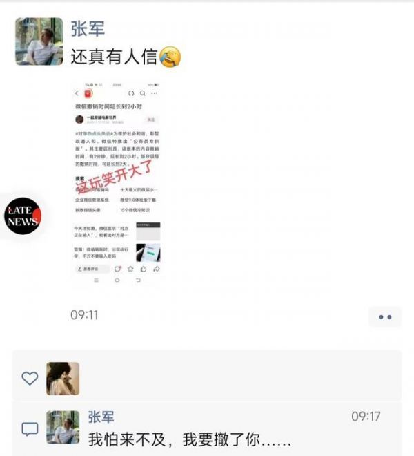 此前,腾讯安全中心曾发布消息称,微信消息的撤回时限为2分钟,在发送成功2分钟内可撤回,而超出2分钟的消息将无法撤回。用户通过长按已发出的微信消息并选择“撤回”,即可完成撤回。