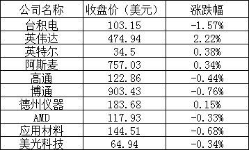 芯片龙头股涨跌不一,英伟达、英特尔、阿斯麦和德州仪器上涨,其中英伟达涨幅超过2%,股价创历史新高。