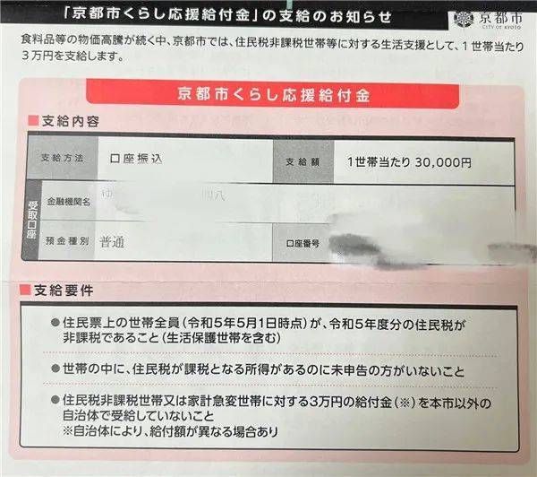 “每人3万日元,申请就有”,据说是如此。去打听名目,有已经拿到手的同学发来一张申请资料,写着“京都市生活应援给付金”。只要是今年5月1日前来京都居住、属于“住民税非课税家庭”,也就是收入达不到交税标准的,或是家庭发生重大变故,预计收入状况与“住民税非课税家庭”相当,都可以申请。