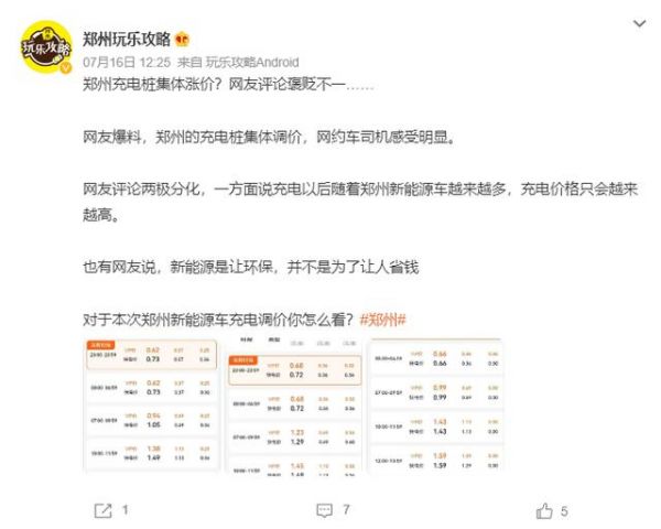 多地充电桩充电费用涨价,用户很不满意