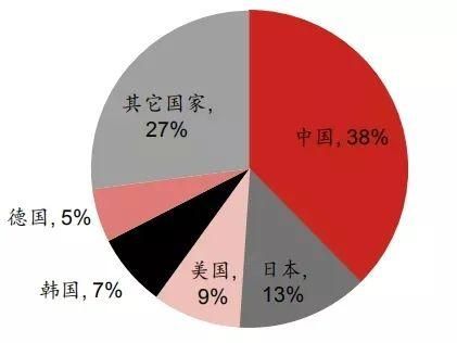 中国自2013年以来一直是全球工业机器人的最大市场,年装机量超过排名其后的日本、美国、韩国、德国之和,这也与我们世界制造工厂的地位相匹配。下图是2020年工业机器人的装机量占比: