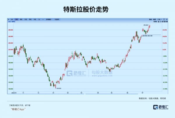 经由一系列消息催化,这个阶段的特斯拉股价已经不再由汽车销量预期来驱动,公司俨然成了AI应用端最强的锚。