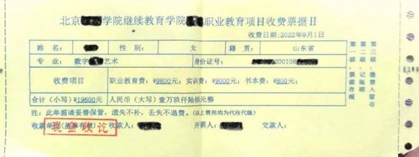 三年来,她在这所学校前后缴纳学费10万余元。其中,第一年学费达5万余元,比她职高三年交的全部学费还多。