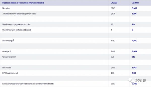 7月19日,荷兰光刻机大厂ASML公布了2023财年二季度财报,该季度净销售额为69亿欧元,同比增长27%,环比增长2%,接近此前给出的指引(65至70亿欧元)上限;净利润为19亿欧元,同比增长38%,环比下滑0.7%;毛利率为51.3%,超出之前给出的(50%至51%)指引上限。