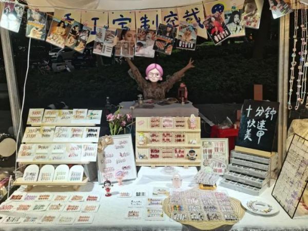 今年 5 月,从公司离职后的皮皮霍抱着 " 找点事情做 " 的想法,和好友一起在武汉开始了摆摊售卖穿戴甲的日子。后来,她偶然在社交平台上看到了招募市集摊主的消息,于是便开始尝试到市集上摆摊。