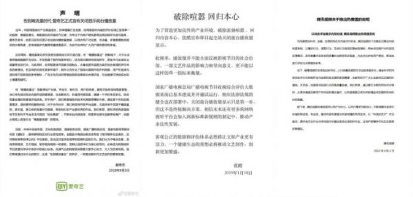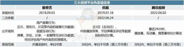 自2018年开始,原本统一显示前台播放量的视频平台以破除“唯流量论”的理由改版数据显示为站内热度值,优爱腾各自公布了自己的热度算法,除了播放量之外互行为甚至观看行为也会被加入。