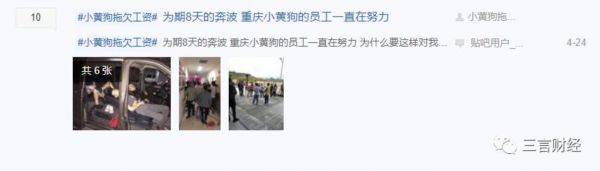 4月中旬,百度小黄狗贴吧出现大量员工讨薪信息。此后不久,据猎云网报道,小黄狗受团贷网事件影响,资金被冻结、多地停运,4000多名员工被迫离职。