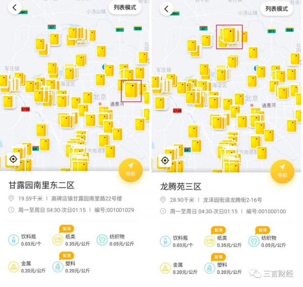 今日,三言财经登录小黄狗App发现,北京很多地区的小黄狗垃圾回收柜确实仍有部分处于暂满或维护的状态。