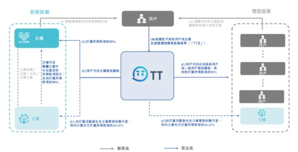 “TT语音”的商业模式图,来源:趣丸集团递交港交所主板的招股书