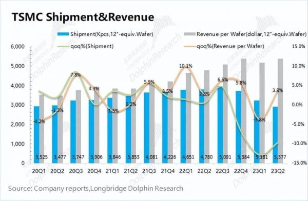 台积电的季度收入,由于每月经营指标的公布,市场预期已经充分。而本季度台积电收入继续下滑,在价格和出货量上的分别表现如何?