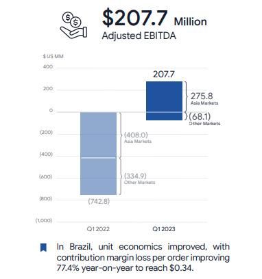 根据Shopee母公司Sea的财报,今年一季度,Shopee 的收入达到21亿美元,同比增长36.3%,并且再次实现季度盈利,该季度经调整EBITDA达2.077亿美元,而去年同期为负7.428亿美元。
